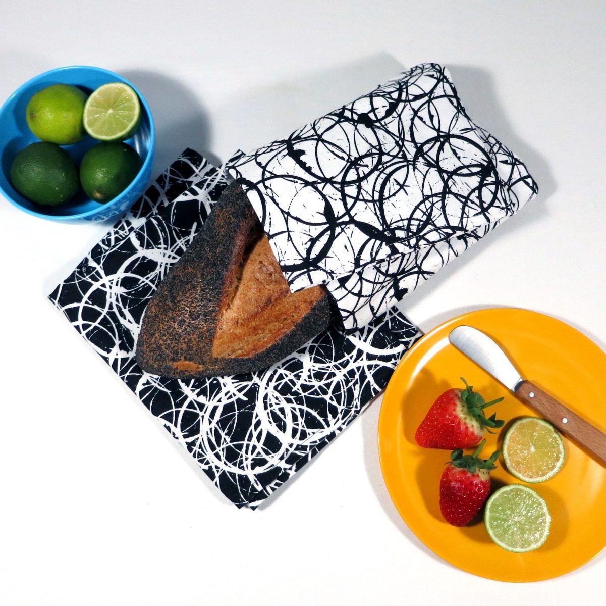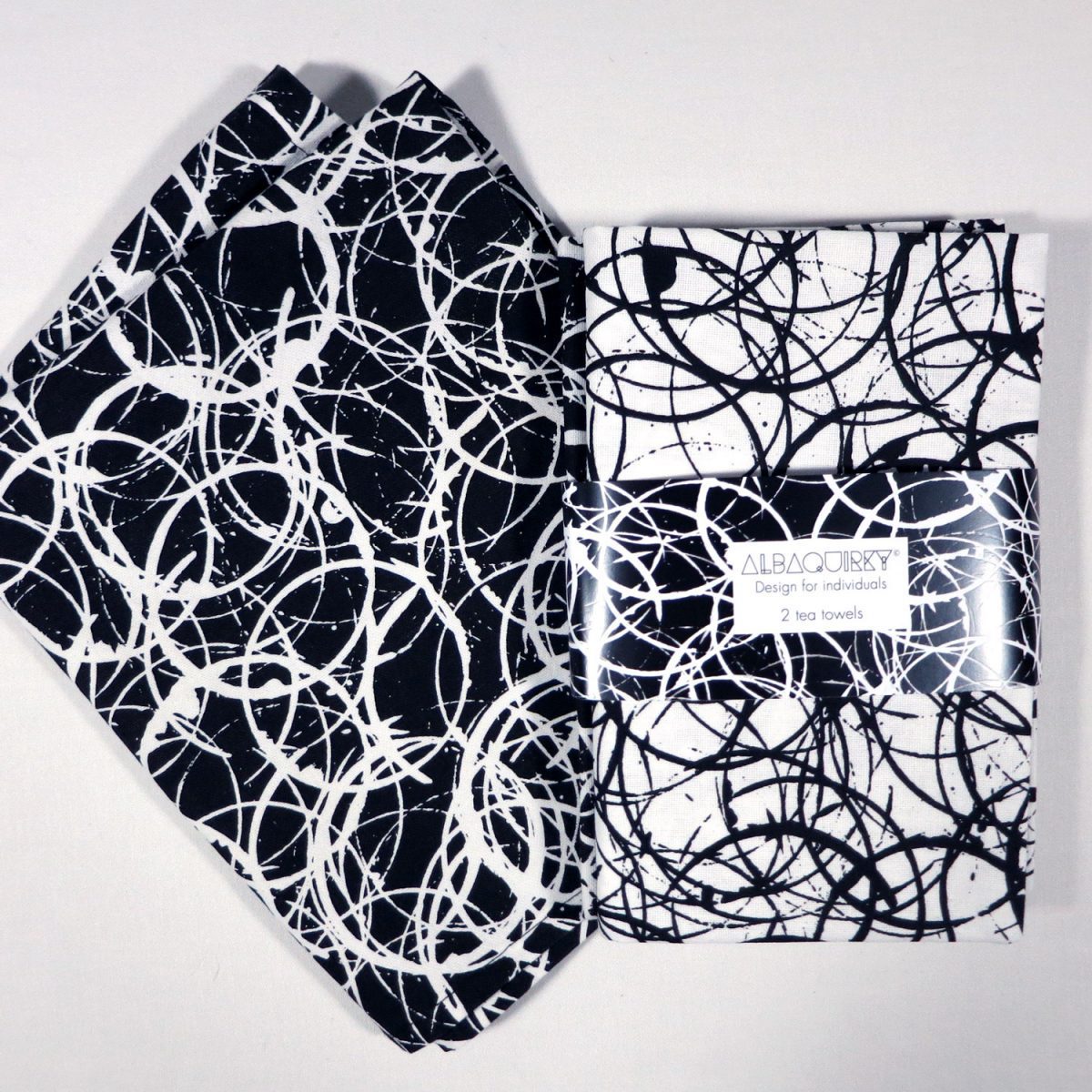 ‘Slàinte mhath!’ – Is a bold black and white set of two screen printed T-towels or dishcloths. The monochromatic positive and negative versions of the abstract design are ideal for a modern home and would make a lovely house warming gift.