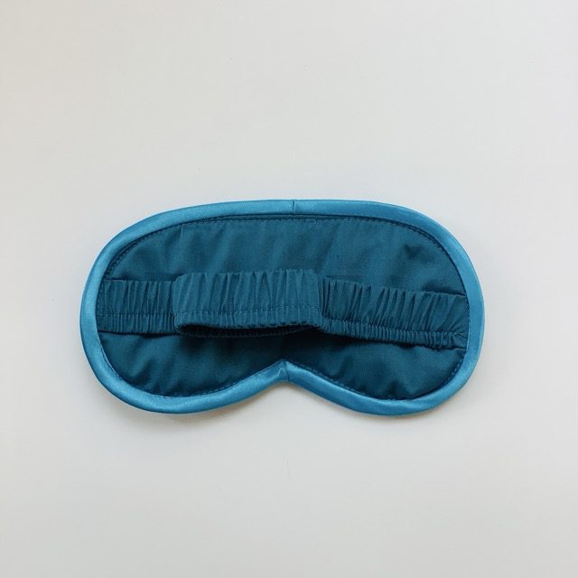 The eye mask has a covered elasticated strap, it is lined with 100% soft cotton, filled with padding made of 100% cotton and finished with the 100% cotton satin bias-binding tape.