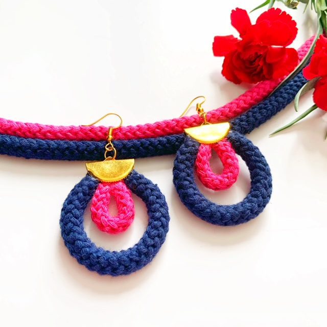 These earrings are so special as I made them from all the ropes leftover that I have from my other designs. So you are superstar as you will be supporting no-waste culture by buying this stunning pair. Duo is a must have! Full of fun and colourful.