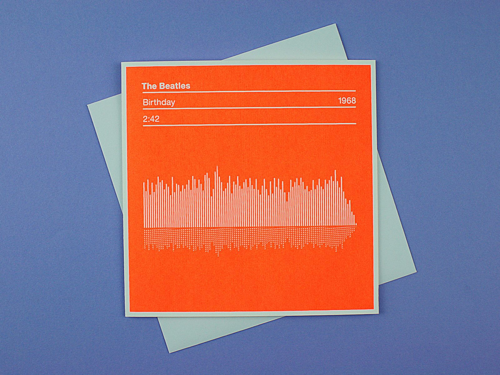The Beatles Birthday Card features a unique hand screen-printed design created by Serigrafica7585. This special card showcases a graphic sound wave, song title, song length, and release date of The Beatles’ iconic track “Birthday.” It is an excellent choice for music lovers who appreciate classic hits and enjoy celebrating special occasions in style. Additionally, the design pays tribute to The Beatles’ legendary White Album, making it a perfect keepsake.