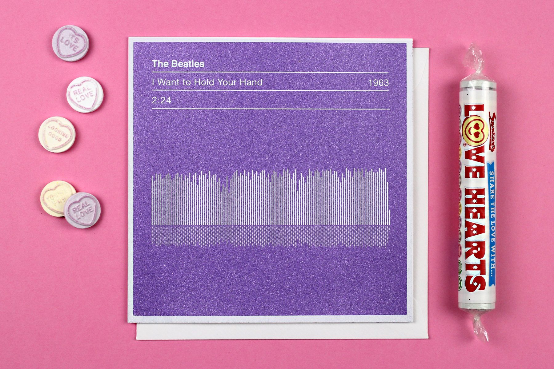 The Beatles, ‘I Want to Hold Your Hand’, Song Sound Wave Valentine Card with song lyrics inside, Anniversary Card