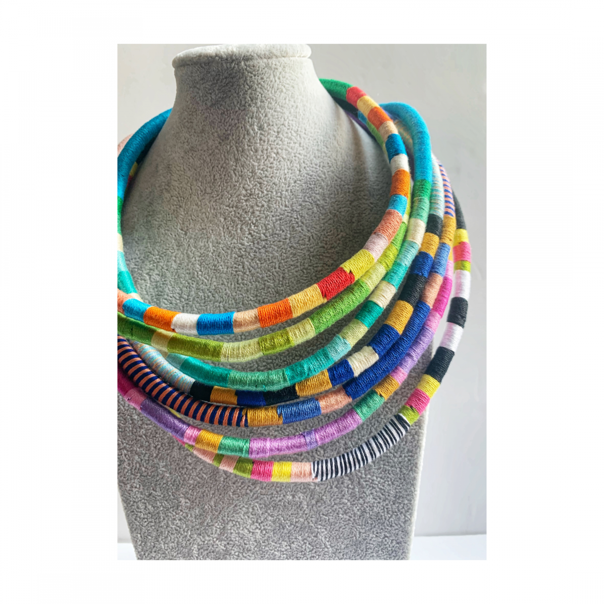 A gorgeous statement necklace from the new collection, featuring the popular wrapped cotton yarn and all those beautiful colors! A high quality piece, made from cotton rope, hand-wrapped with cotton yarn. This necklace is a true eye-catcher that will not go unnoticed. Very lightweight!