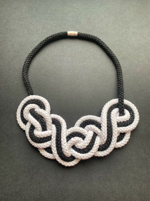 A beautiful handmade necklace. It is made using soft cotton rope. It’s around 55 / 60 cm in length. Can be made longer. It has magnetic lockable clasps to give a beautiful finish. This necklace is also hand washable.