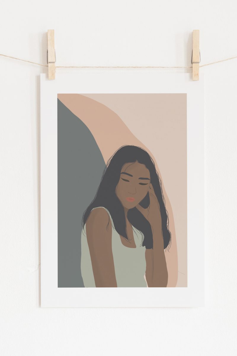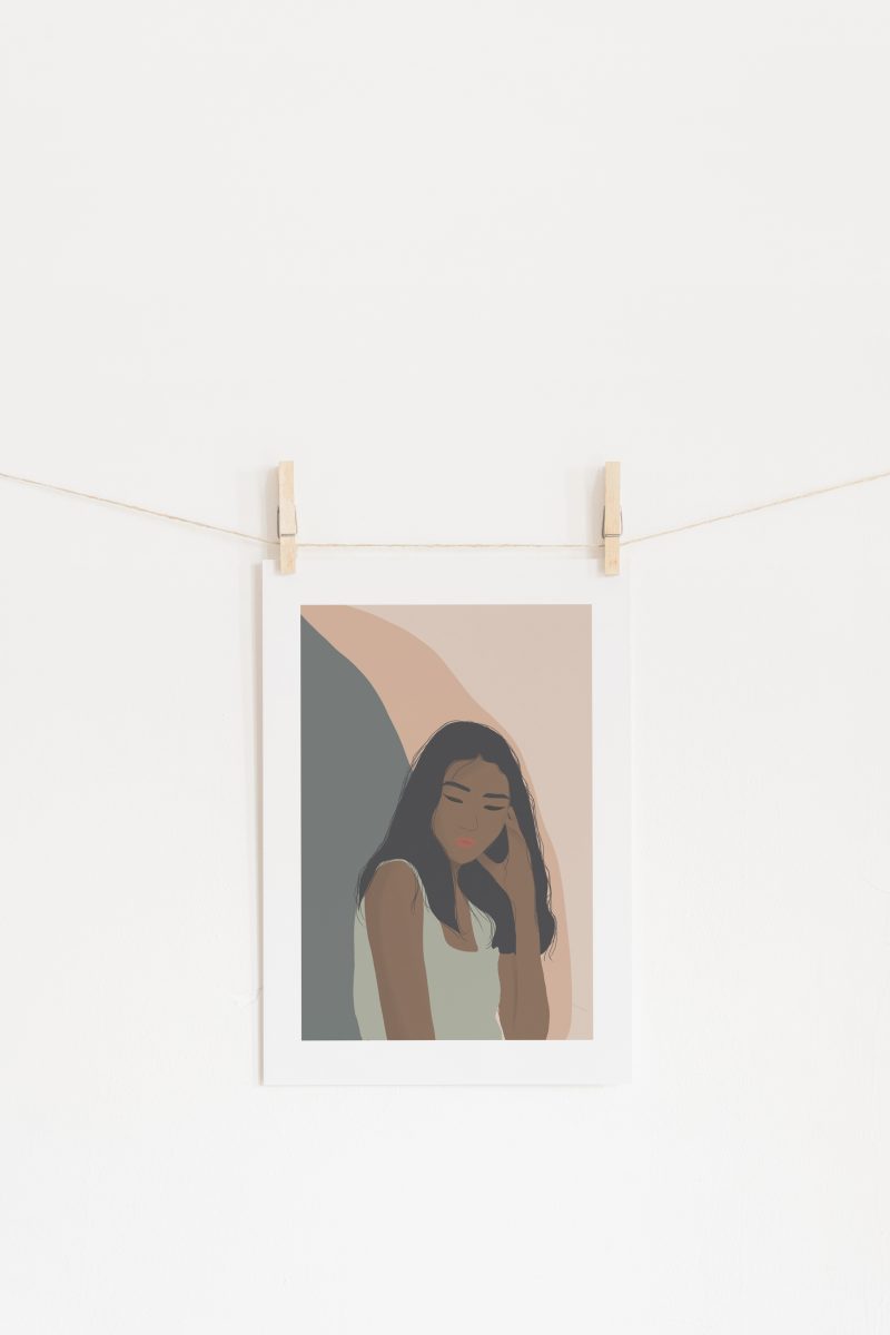 A4 Art Print depicting an abstract girl thinking about life