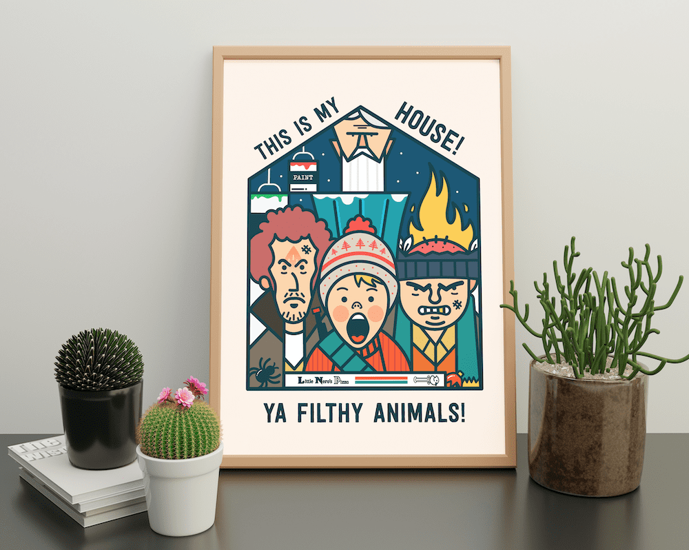 This Print is inspired by the amazing film Home Alone with the quote ” This is my House! Ya Filthy Animals!” and is a perfect housewarming gift for that special someone.