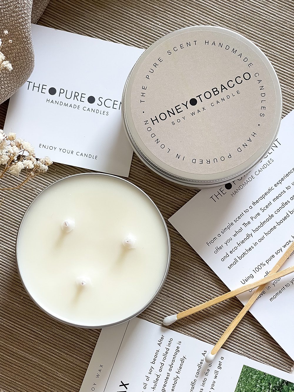Transform your home with the Honey and Tobacco Three Wick Soy Candle in a Tin. Perfect for adding a touch of warmth and comfort to any room, or as a thoughtful gift, this candle brings a luxurious fragrance that’s both soothing and sophisticated. Shop now and enjoy the rich blend of honey and tobacco!