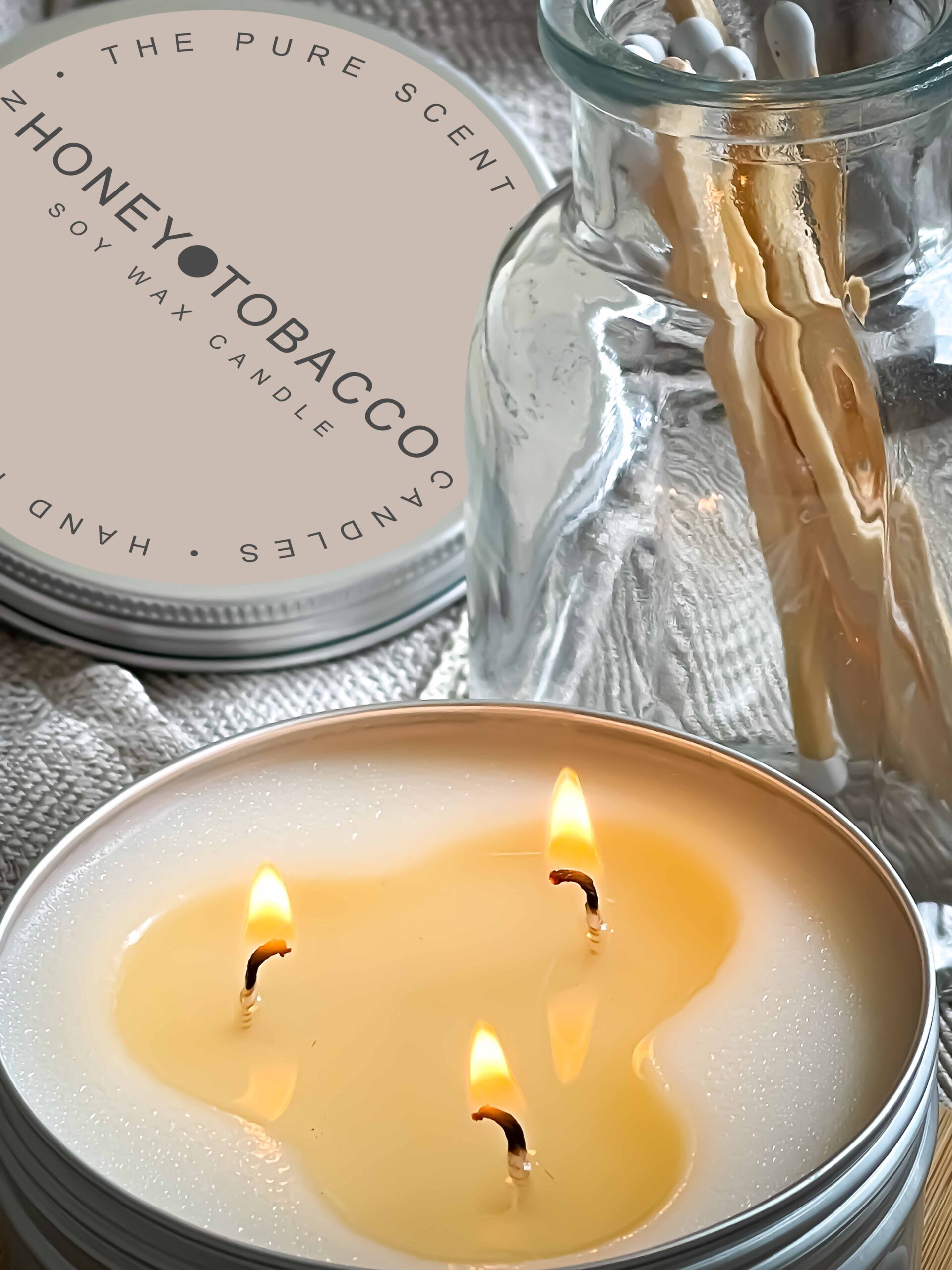 Honey and Tobacco 3 Wick Soy Candle in a Tin
