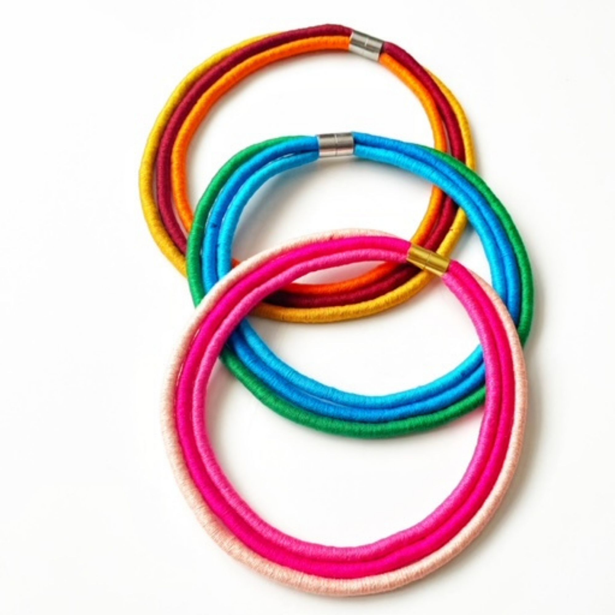 Take your love for handmade jewellery to the next level and also enjoy an amazing piece of statement necklace with this cotton wrapped ‘Trinity’ Collar Necklace.