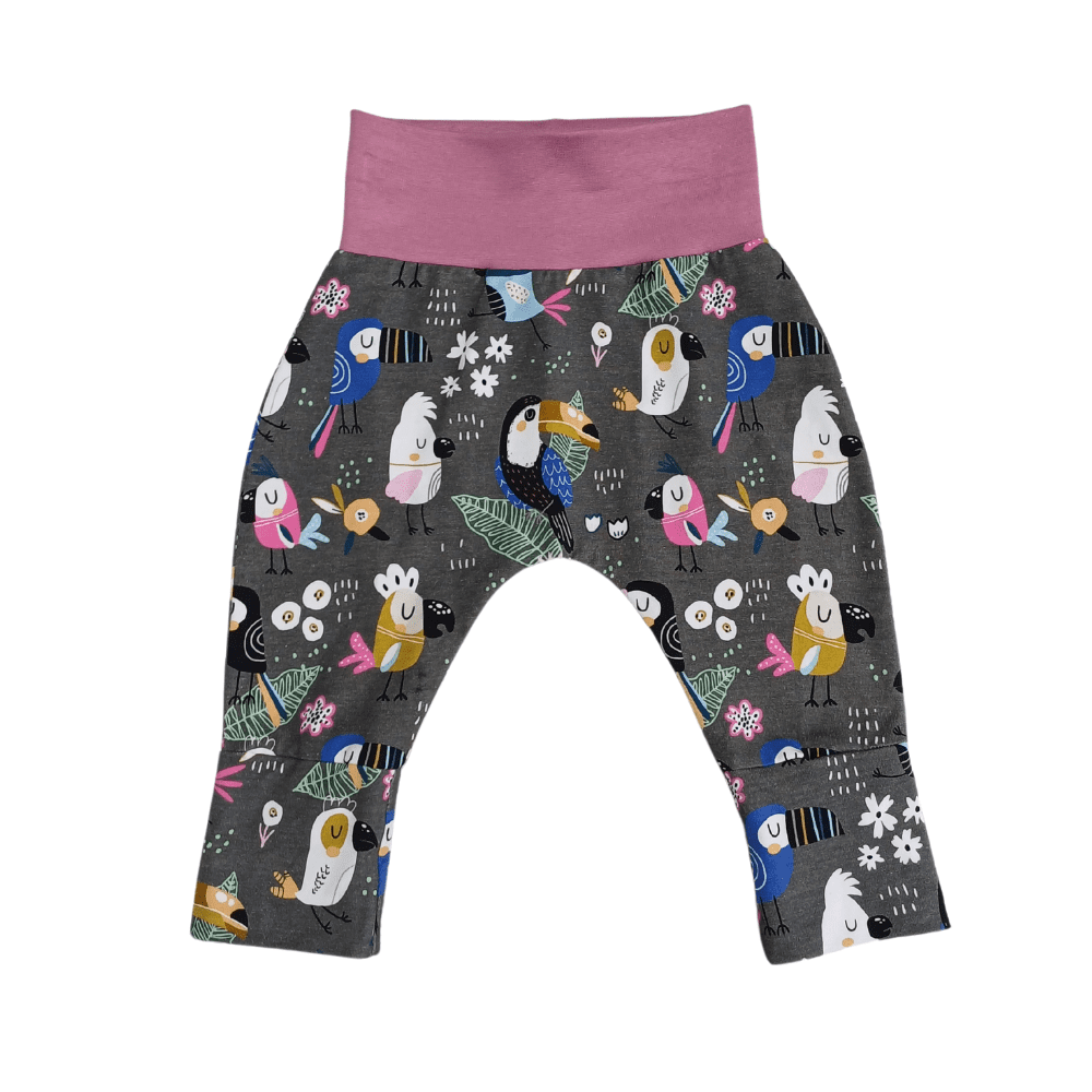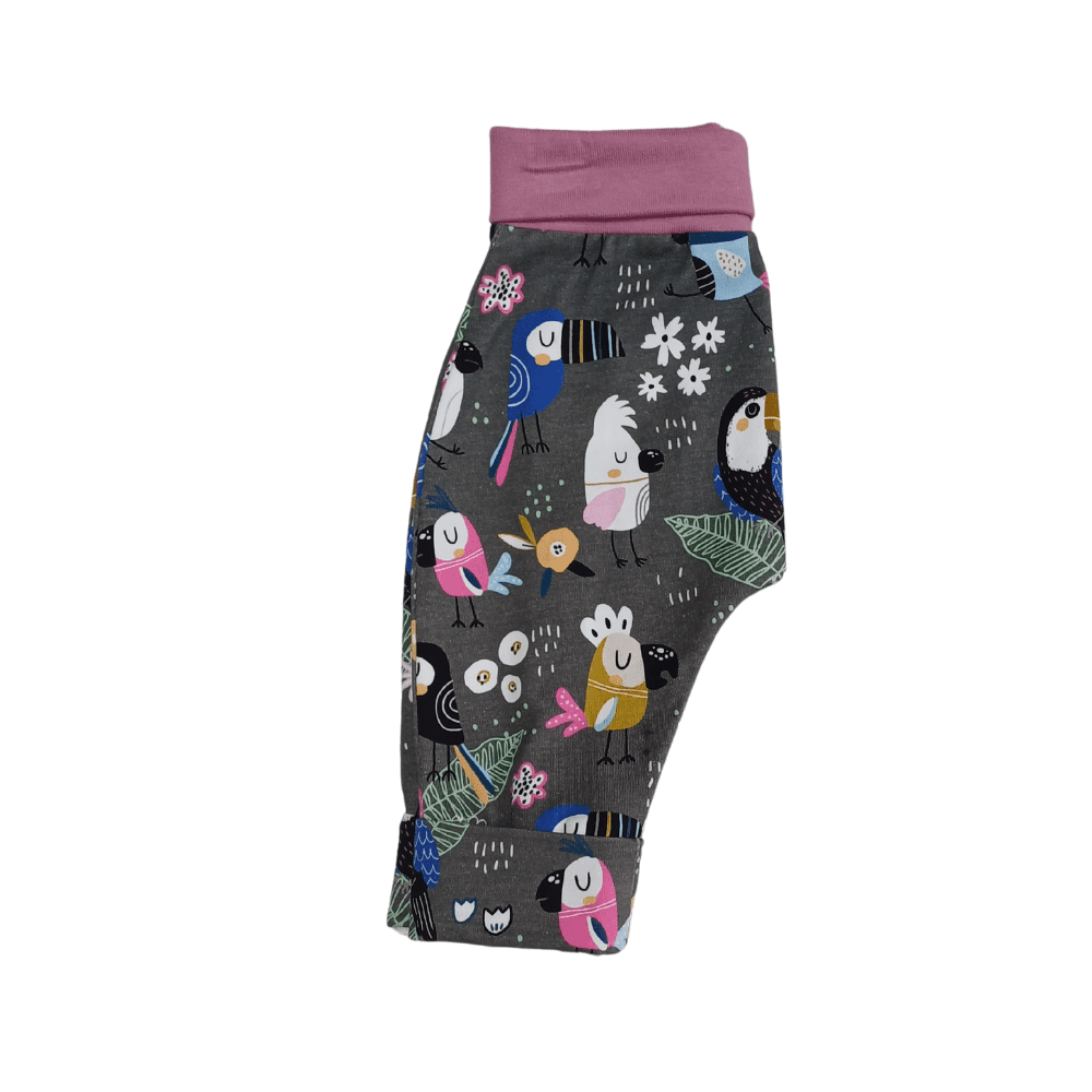 All sizes have a roll over contrast waistband made from soft stretchy ribbing for ultimate comfort which extends as your little one grows. The ankle cuffs are the finishing touch which fold down to lengthen the leg.