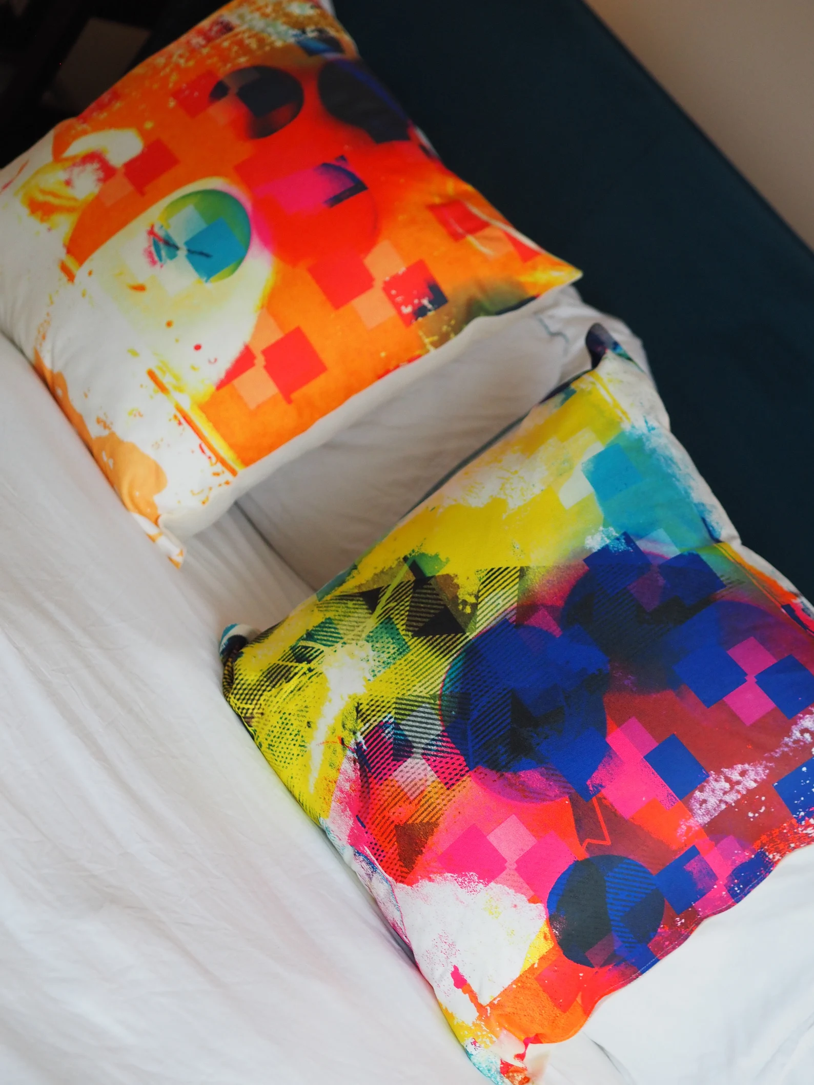 Designed to stand out, this modern decorative cushion cover is digitally printed on high-quality performance linen fabric and finished with a discreet hidden zip along the bottom for a clean, modern look.