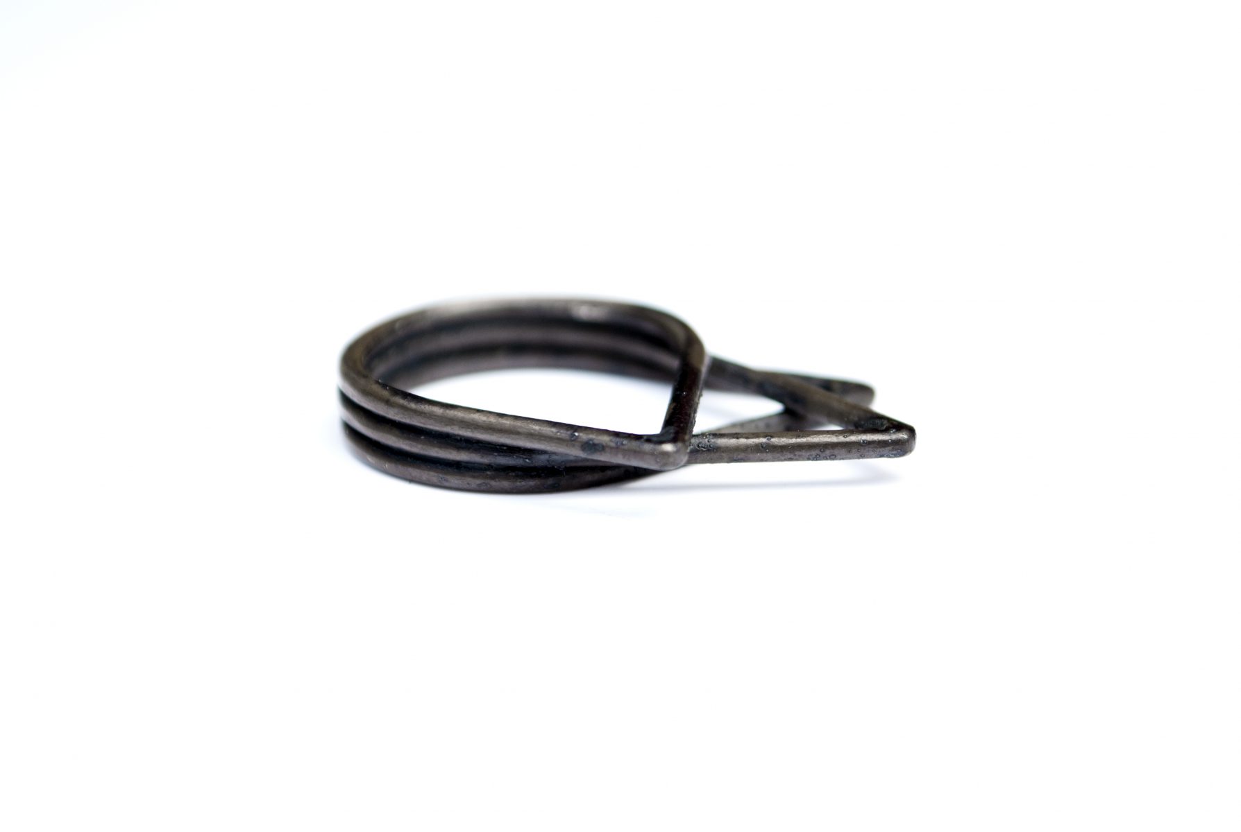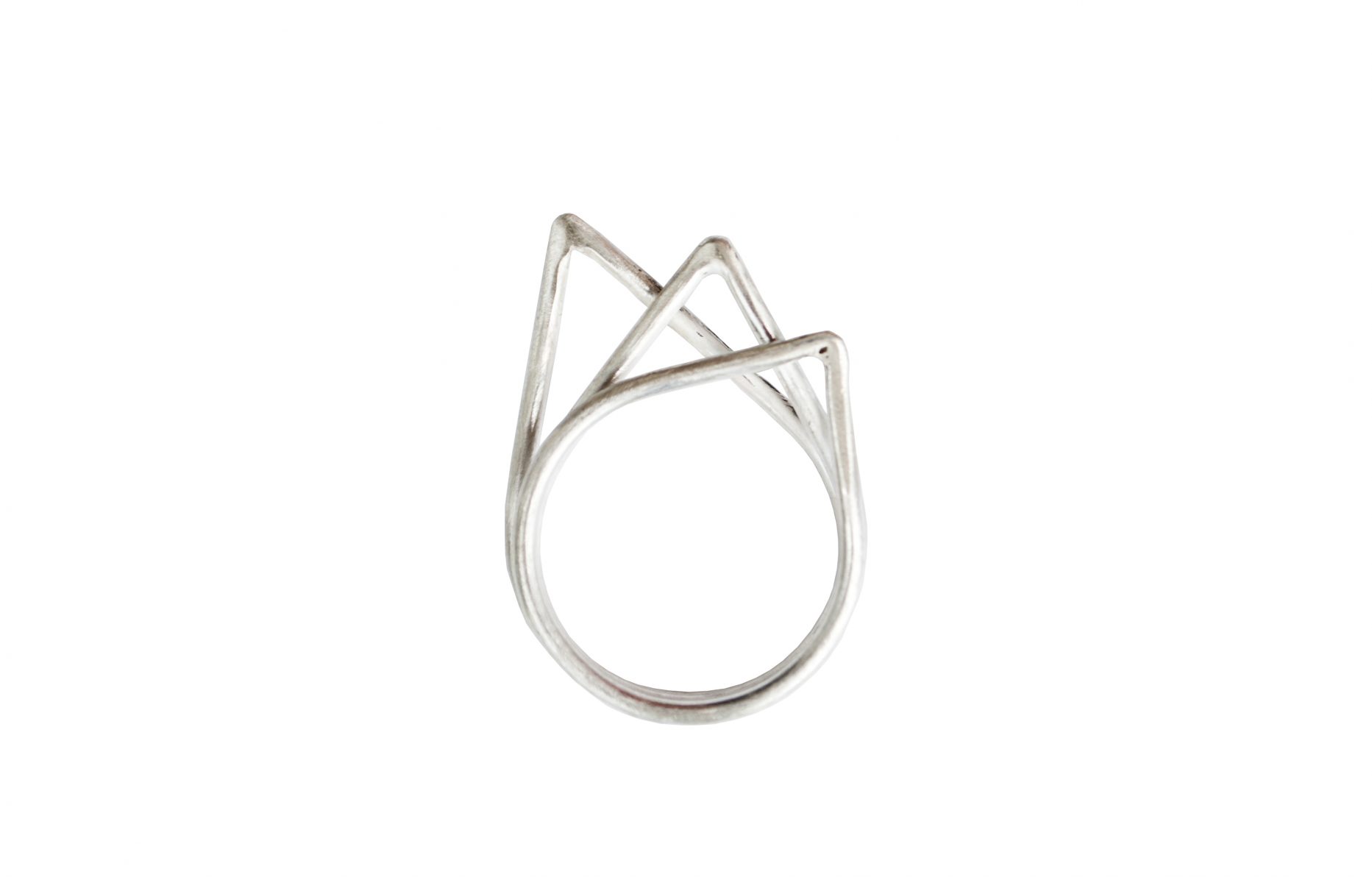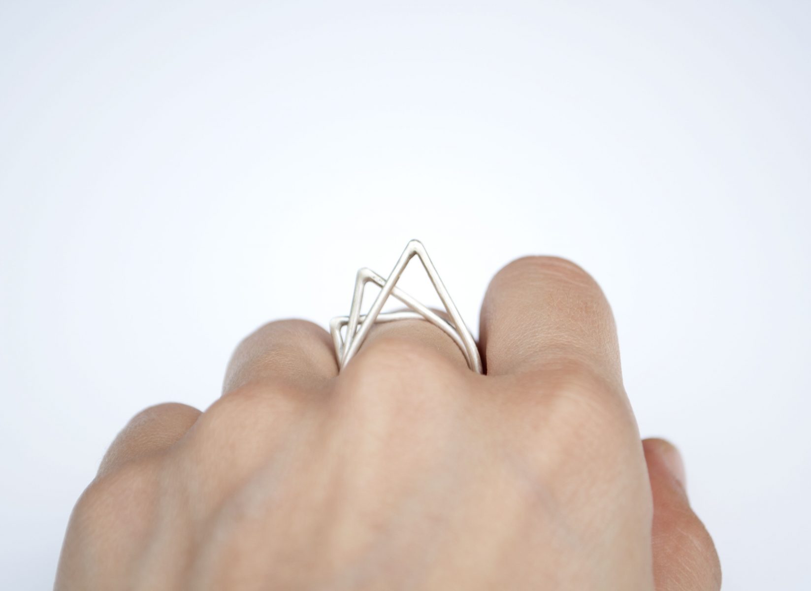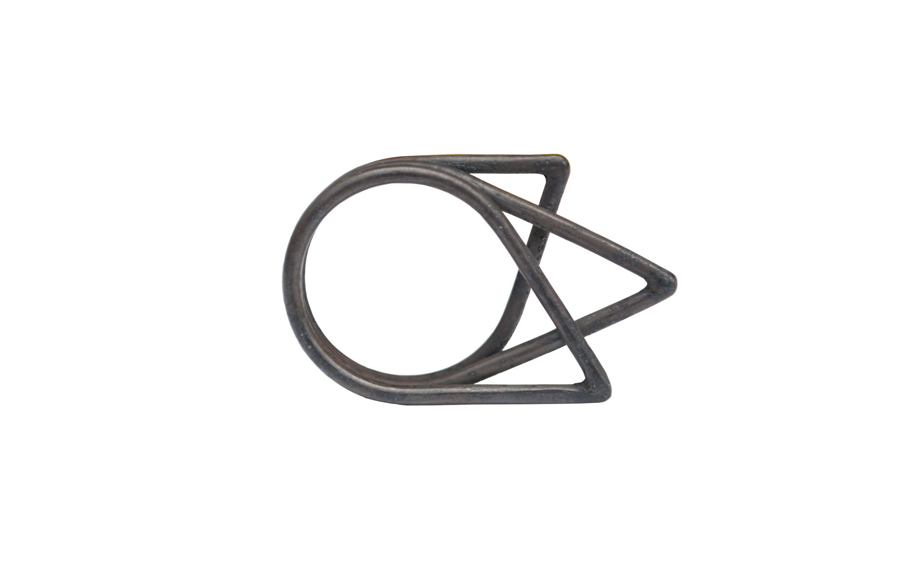 The ring is made of sterling silver wire, 1.5mm width, which have been formed into three drops that have been soldered together to create a geometric and minimalist ring.