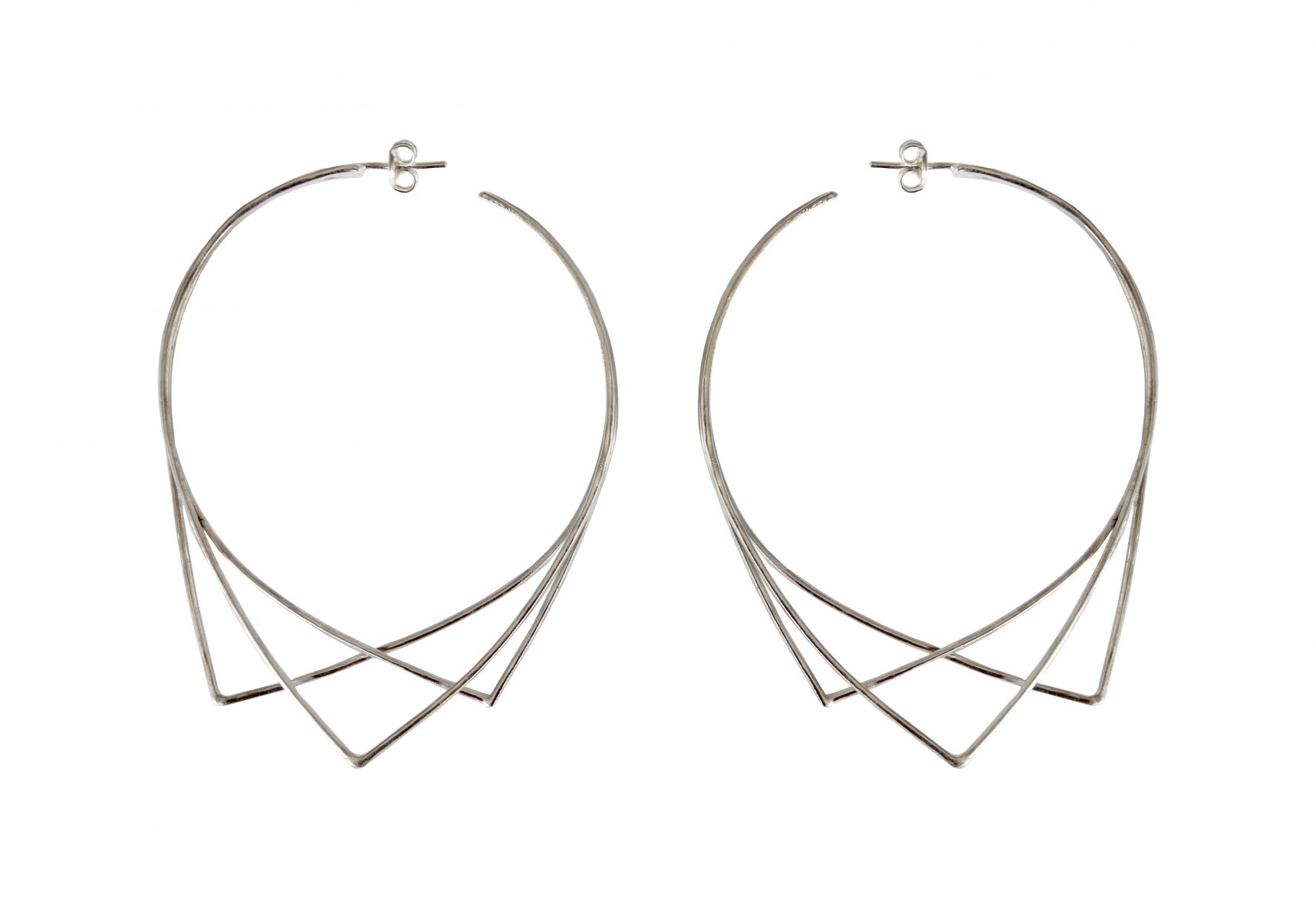 These geometric earrings are made of sterling silver wire which has been formed to create three triangles.