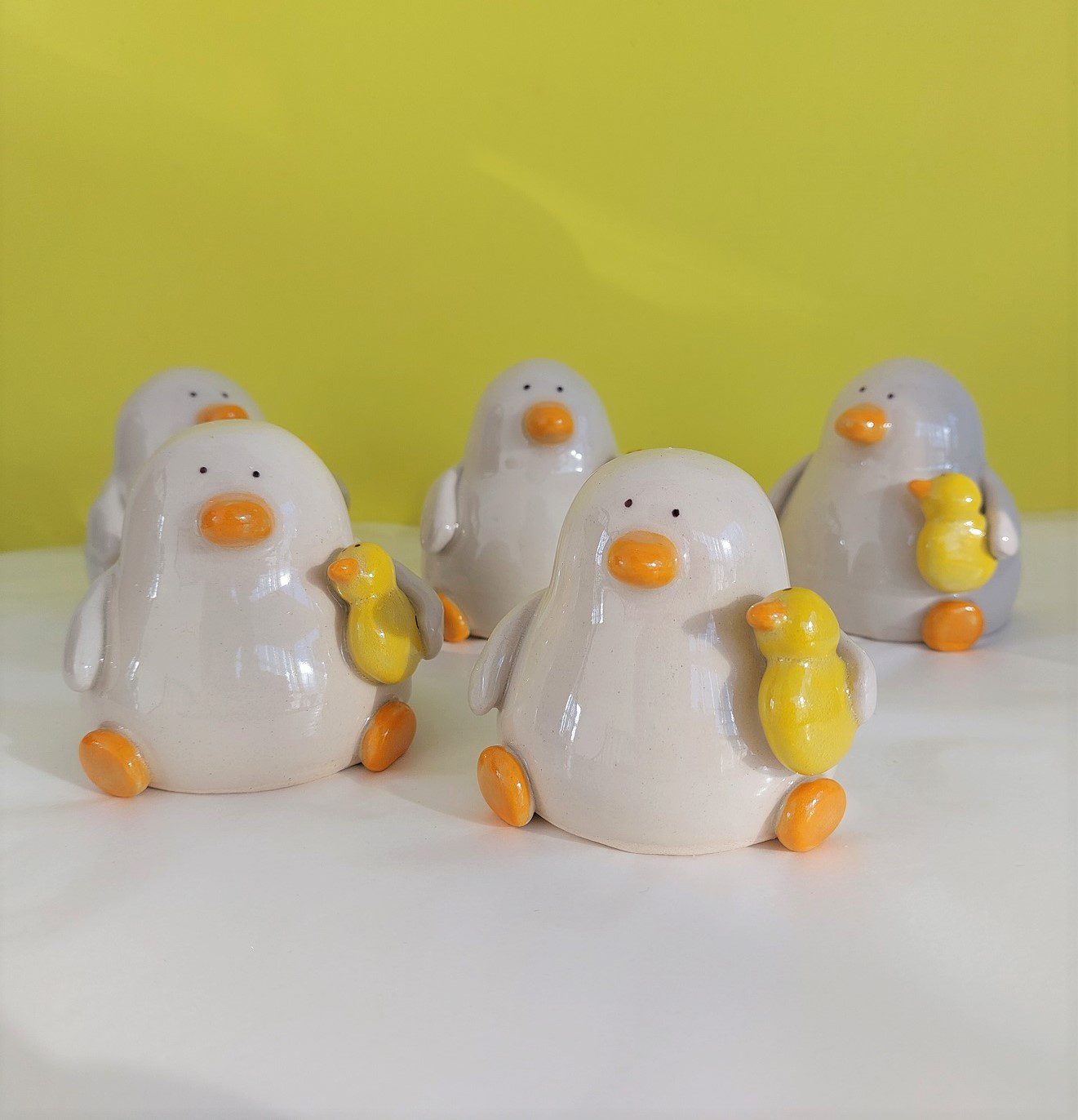 Val is a wheel thrown stoneware ceramic duck, with hand made ducky features and a small ceramic bath duck for company. Underglazed in vibrant velvets, then kiln fired with transparent sheen to stoneware temperatures.