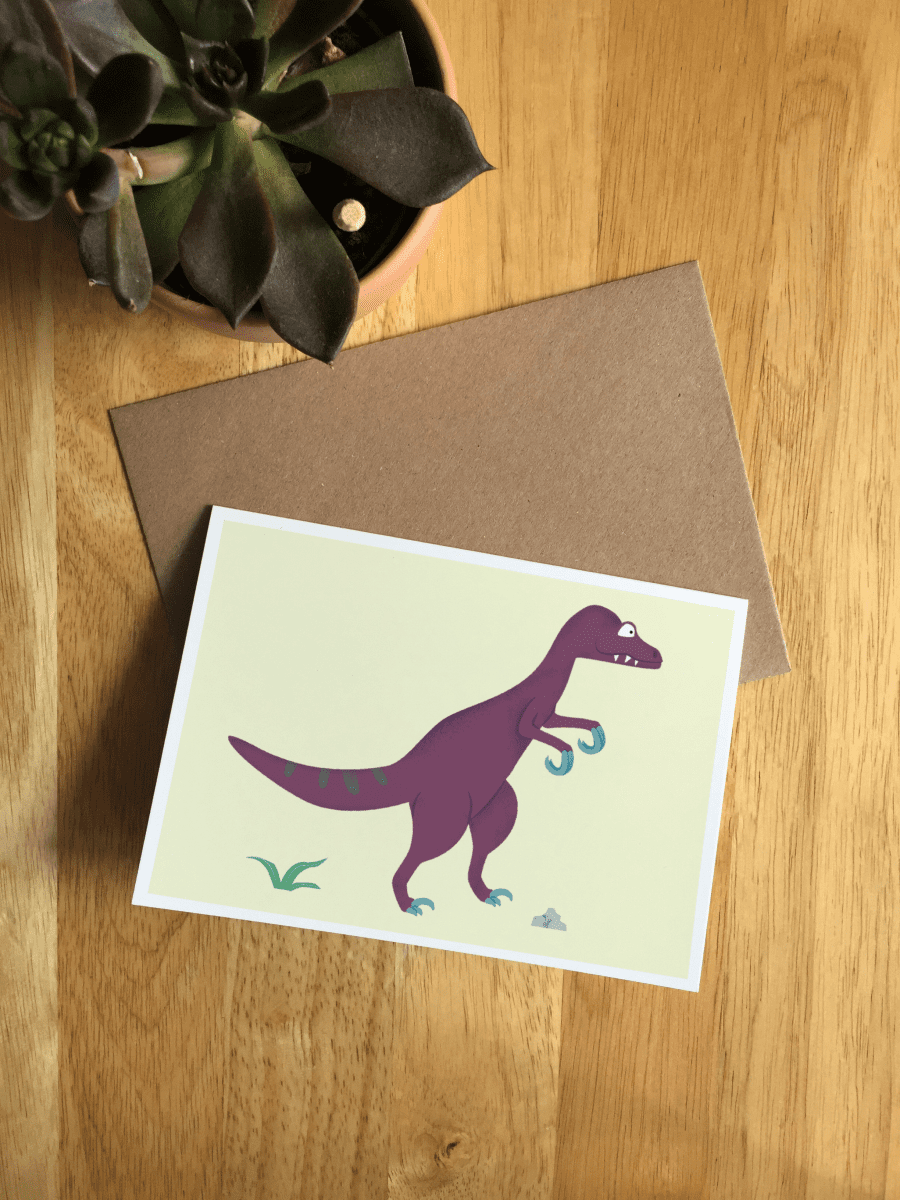 I have illustrated a cute Velociraptor to go into my dino greetings card collection. If you would like more than one card, you can mix and match any of my dino cards to create custom card bundle. Just send me a message along with you order stating which cards you would like to include.