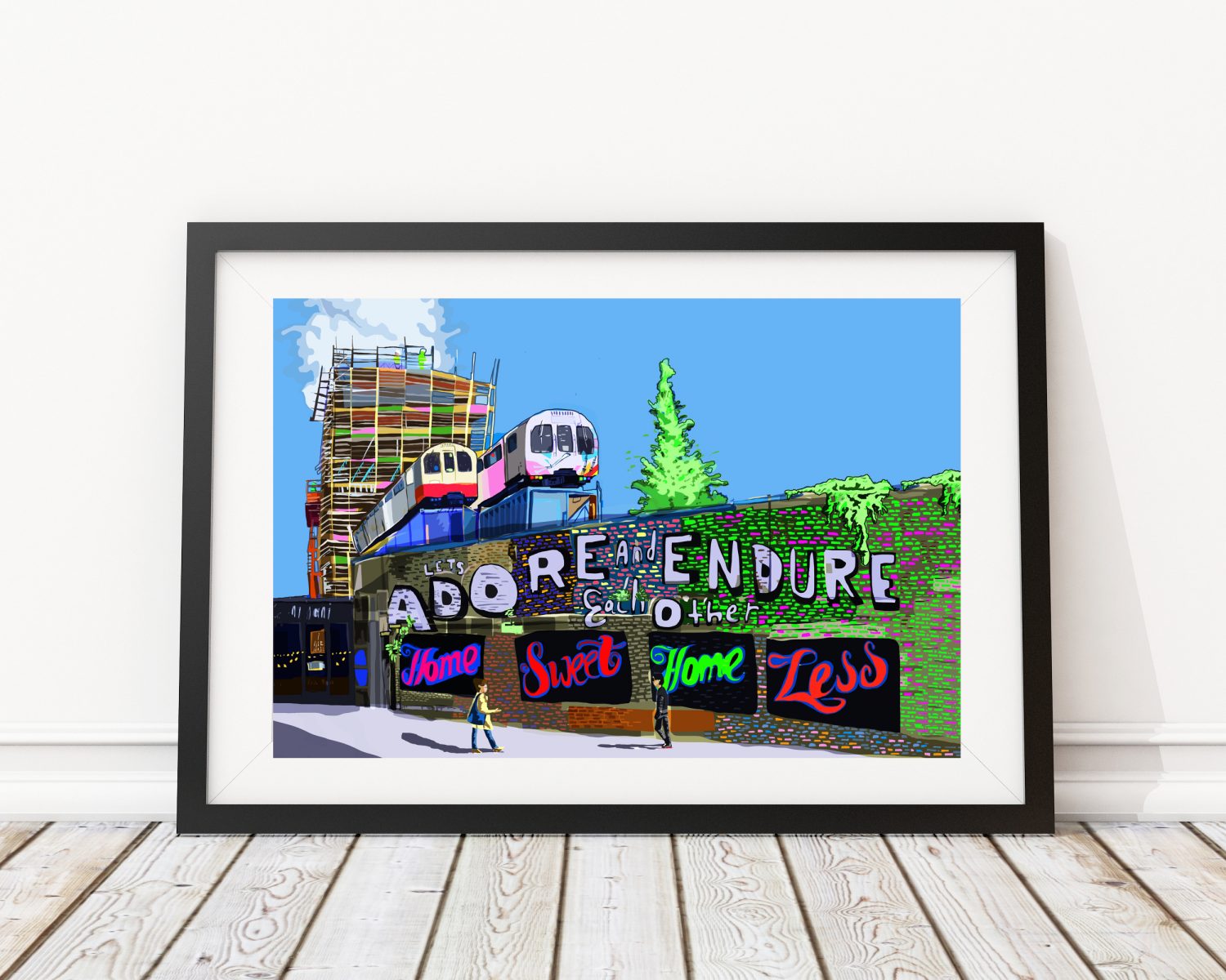 “We mainly create London art because it’s an unendingly interesting city, where inspiration is infinite. The contrast of the modern world up against the city’s big historical stalwarts creates incredible panoramas. We like to think our art is a bit of fun for the eyes, a slightly wobbly look at the world, with some added colour if you would want it.” – Tom