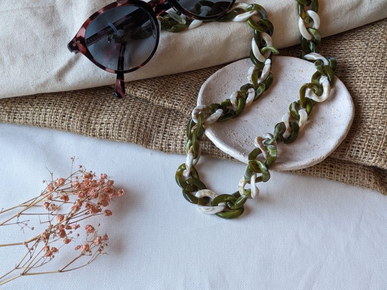 Warm Marble and Olive Chunky Acrylic Glasses Chain