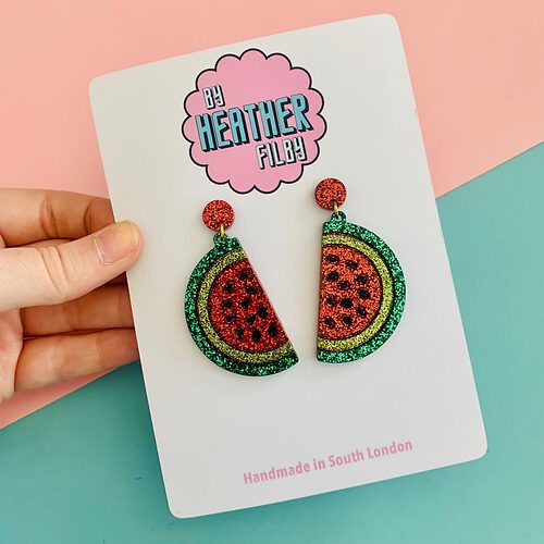 Watermelon Earrings. An array of colour & sparkle – unique pieces of statement art, for your ears.