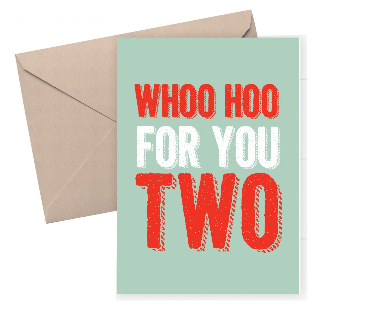A quirky card for a wedding or an engagement. Whoo hoo for you two. In green, orange and white this will cute card says congratulations and a big Whoo Hoo!