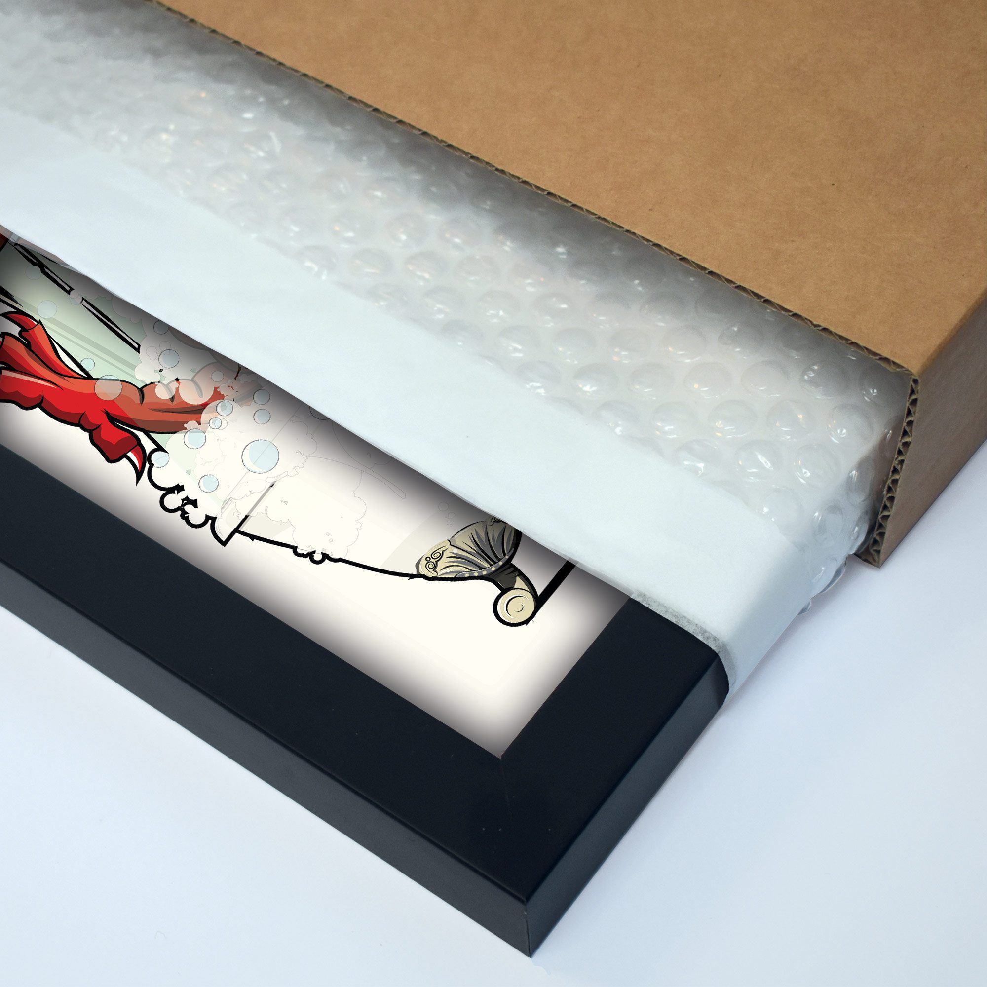 Thick 180 gsm paper, matte finish. Packed carefully in a postal tube or packed with if framed, packed in protective packaging to insure frame isn’t damaged.