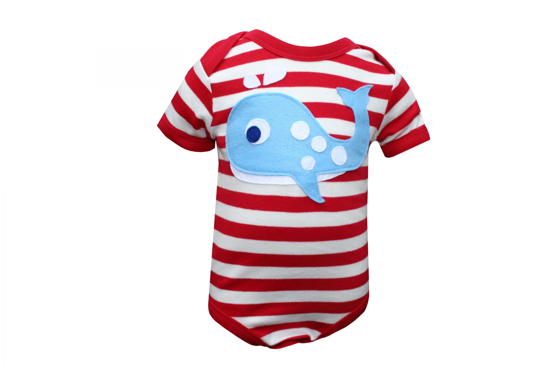 With a splish and a splash your little one will look beach ready in this bodysuit with custom made whale design.