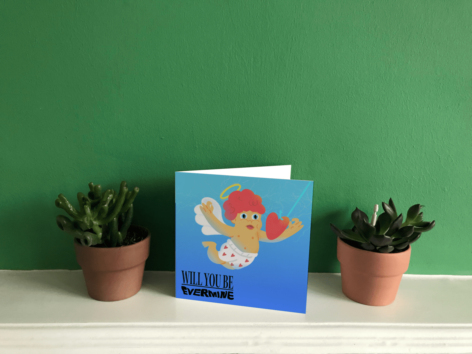 A cute greeting card ideal for the music fan. Express your love with a card inspired by Nirvana’s Nevermind.