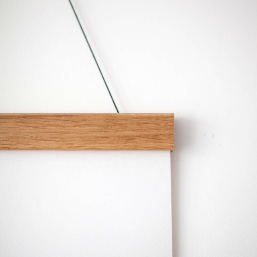 The frame comes with four wooden strips that are embedded with strong magnets, securely holding your artwork in place. Thanks to this clever design, you can easily swap out prints without damaging the artwork or frame. The frame also comes with black waxed cotton cord, ready to hang your artwork right away. You can effortlessly adjust the cord’s length to suit your preference and wall space, giving you full control over the presentation.