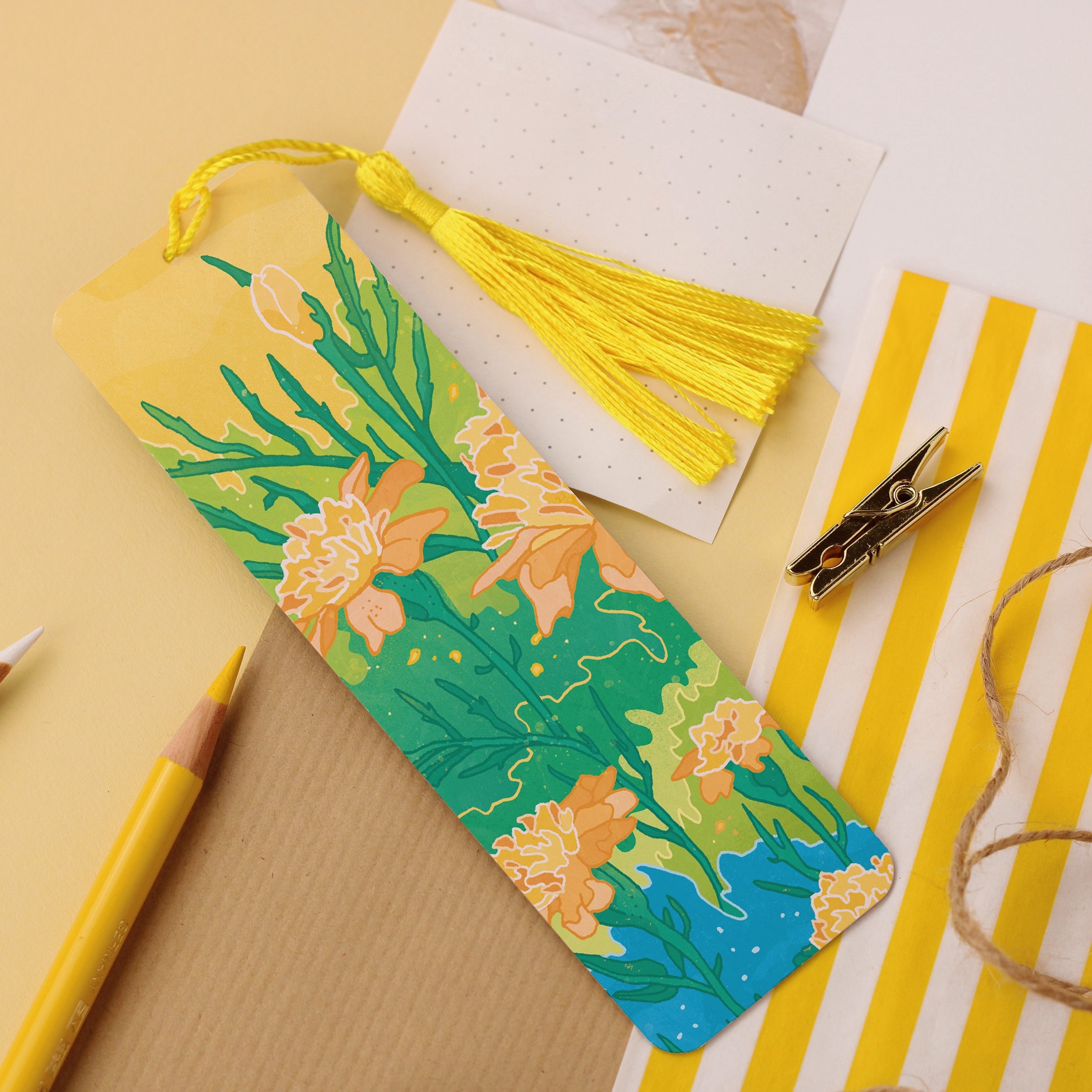 For all book lovers, the ‘Yellow Flowers’ illustration bookmark will make your reading experience much more enjoyable and stimulating!