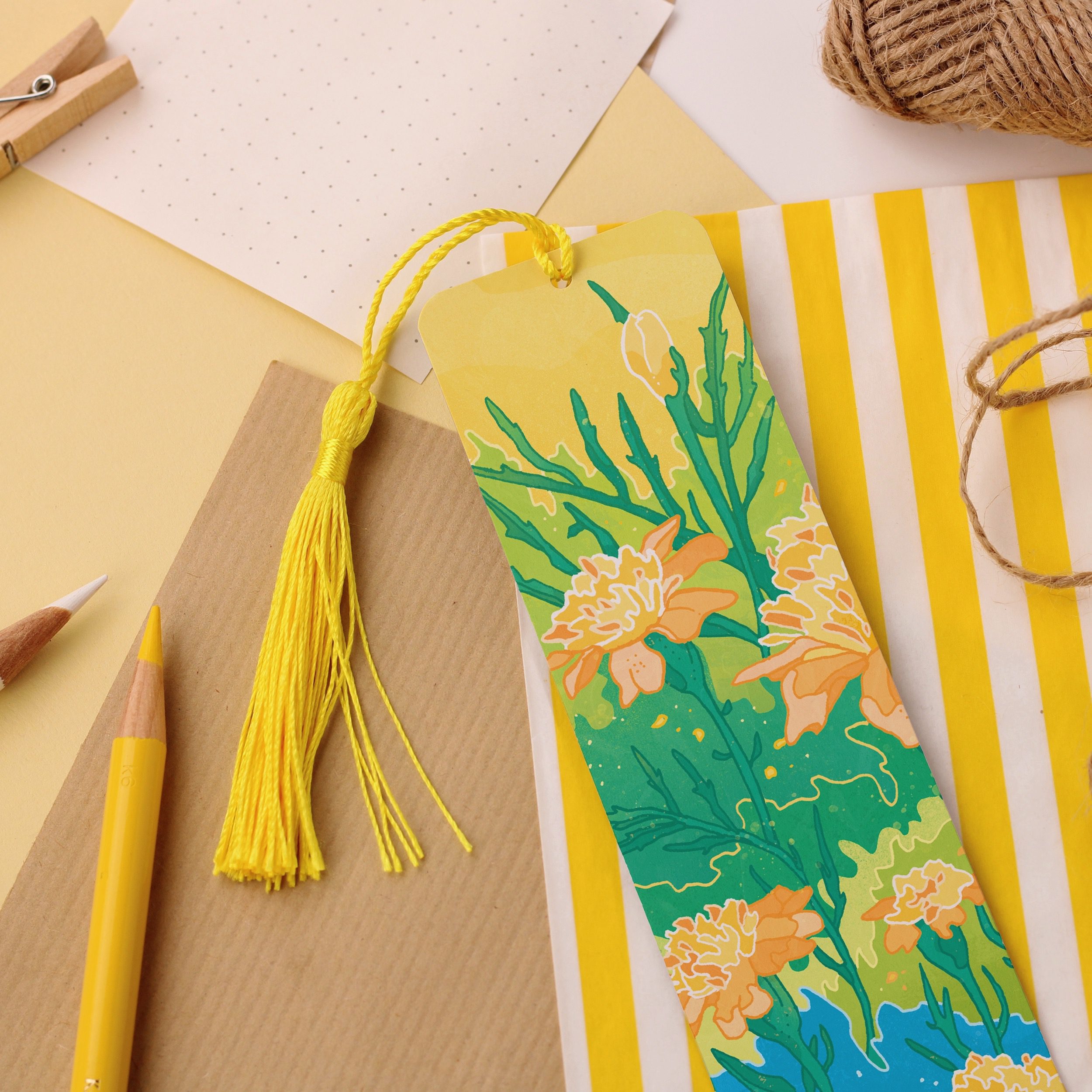 It features a fragment of my original ‘Yellow Flowers’ illustration and it is finished with a luxury bookmark tassel.